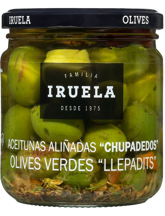 Склад: зелені оливки Вердіаль, вода, часник, апельсин, червоний перець, підсилювач смаку: глутамат натрію, спеції, сіль, оцет і натуральні ароматизатори.