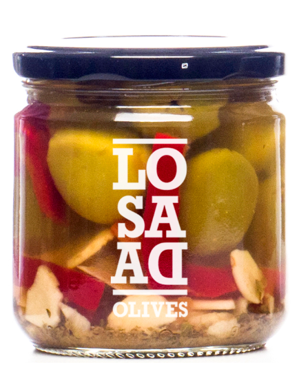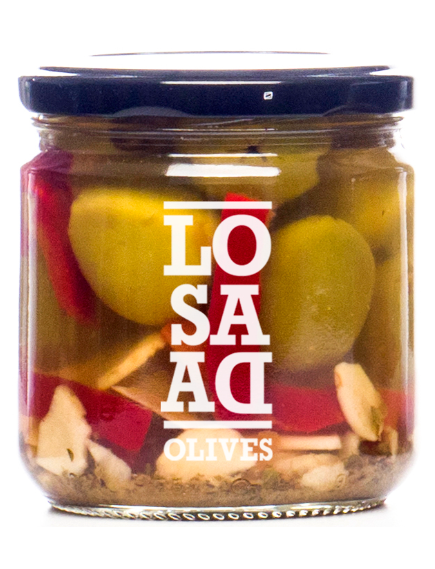 Склад: оливки без кісточок сорту Гордаль, перець чилі, вода, сіль, регулятор кислотності: E330, E270, антиоксидант: E300. Може містити фрагменти кісточок. Містить сульфіти.