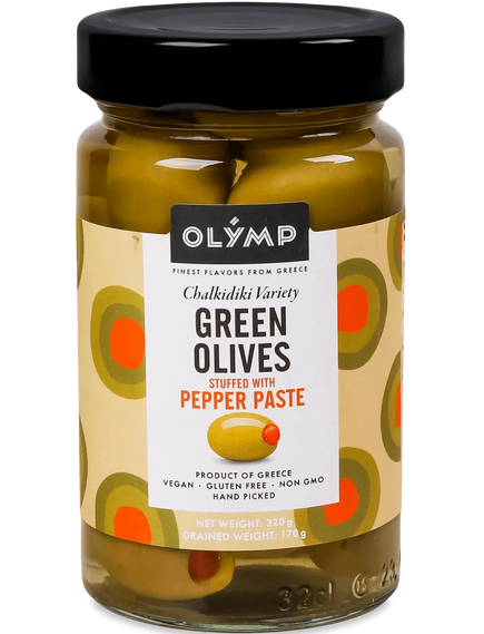 Olymp Оливки зелені фаршировані перцевою пастою 320 г