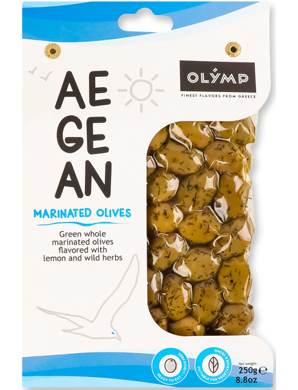 Olymp Оливки зелені з кісточкою мариновані з лимоном та травами Егейські 250 г