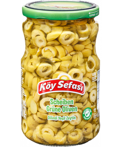 Нарізані зелені оливки виробляються шляхом видалення кісточок і нарізання оливок в автоматичних машинах, ароматизованих методом стиглого або солоного конфі. У ваших сніданках, соусах, салатах і піцах; Ви можете використовувати його практично.