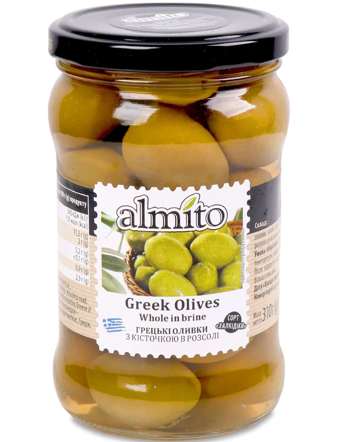 Оливки зелені з кісточкою грецькі Almito 320 мл