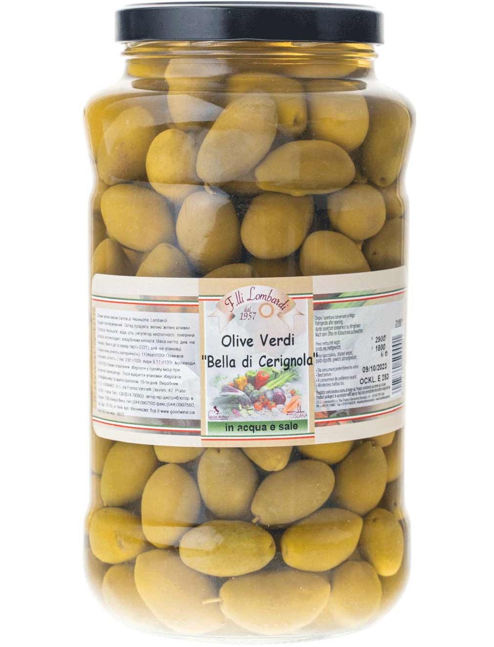 Lombardi Оливки зелені Белла ді Черіньйола з кісточкою 2900 г