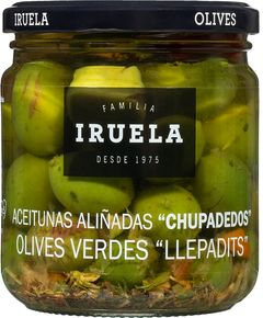 Склад: зелені оливки Вердіаль, вода, часник, апельсин, червоний перець, підсилювач смаку: глутамат натрію, спеції, сіль, оцет і натуральні ароматизатори.