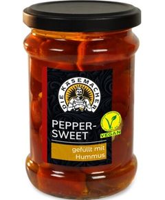 Склад: перець солодкий черрі (30%), олія рапсова (44%), хумус (горох нут варений, вода, паста з кунжуту, кухонна сіль, спеції, регулятор кислотності: лимонна кислота, консервант:сорбат калію) (26%).
