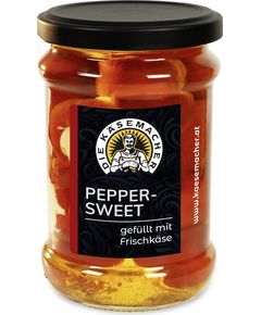 Склад: перець черрі (30%), сир пастеризований (26%), олія рапсова (44%), сіль харчова, спеції E412, E1442.