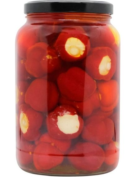 Склад: перець черрі (30%), сир пастеризований (26%), олія рапсова (44%), сіль харчова, спеції E412, E1442.