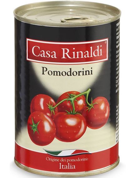 Солодкі та соковиті помідори черрі Casa Rinaldi консервуються цілими, без шкірки та поєднані зі свіжим томатним соком: ароматні та ароматні, вони використовуються для покращення смачних рецептів і надають аромату навіть найпростішим стравам. Сировина надходить виключно від сертифікованих кооперативів.