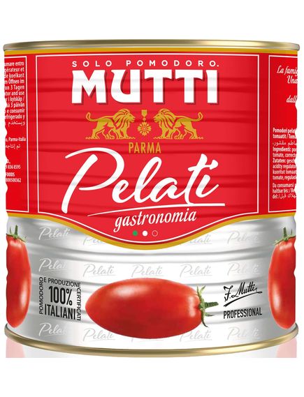 Помідори Mutti збирають на піку літа, делікатно очищають від шкірки парою, щоб відчути весь смак і аромат свіжих помідорів. М’які та однорідні, вони занурені неушкодженими у вершковий соус. Особливо універсальні на кухні, їх можна використовувати разом із соусом, цілими, нарізаними шматочками або філе, вони підходять як для короткого, так і для тривалого приготування. Ідеально підходить для покращення традиційних середземноморських страв, вони стануть головними героями ваших недільних страв.