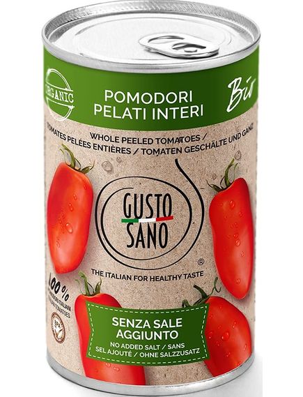 Багато досліджень пов’язують органічні помідори з користю для серця, оскільки антиоксидантні вітаміни С і Е в них, а також лікопін, здається, уповільнюють процеси, які в кінцевому підсумку викликають серцеві захворювання. Органічні нарізані помідори Gusto Sano не містять солі та цукру.