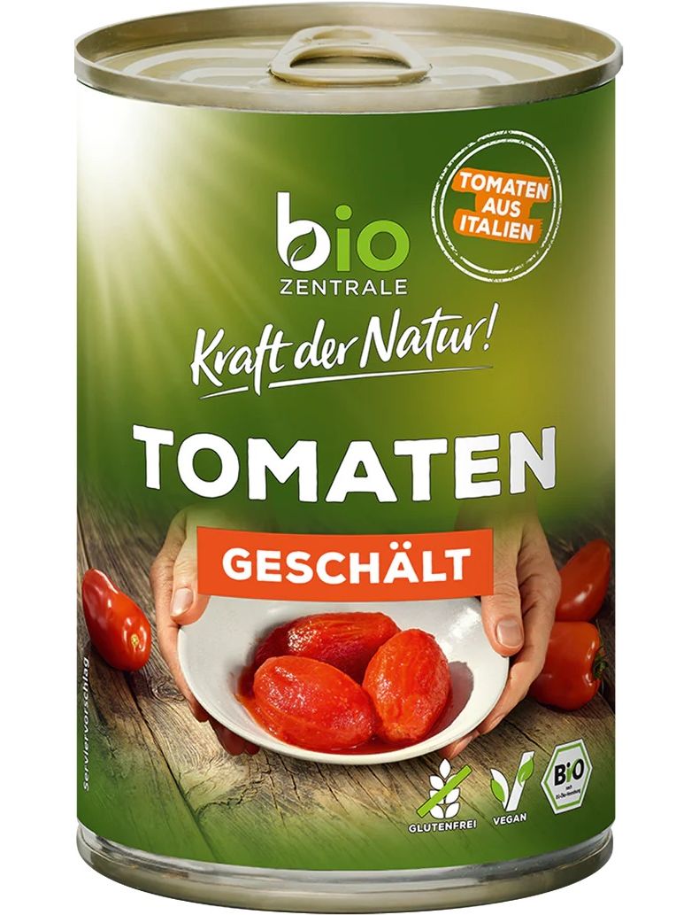 Очищені помідори Biozentral виготовляються зі свіжозібраних, дозрілих на сонці італійських помідорів. Вони зберігають свій фруктовий смак у томатному соку та є універсальними.