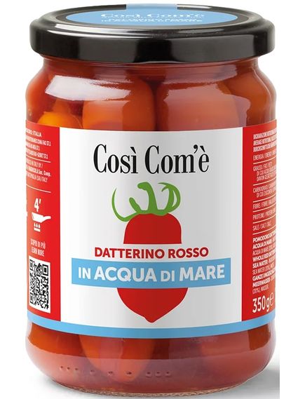 Datterino Rosso in Acqua di Mare — це сорт помідорів, які зберігаються за допомогою спеціальної обробки, щоб зберегти його первинний стан, смак і свіжість.