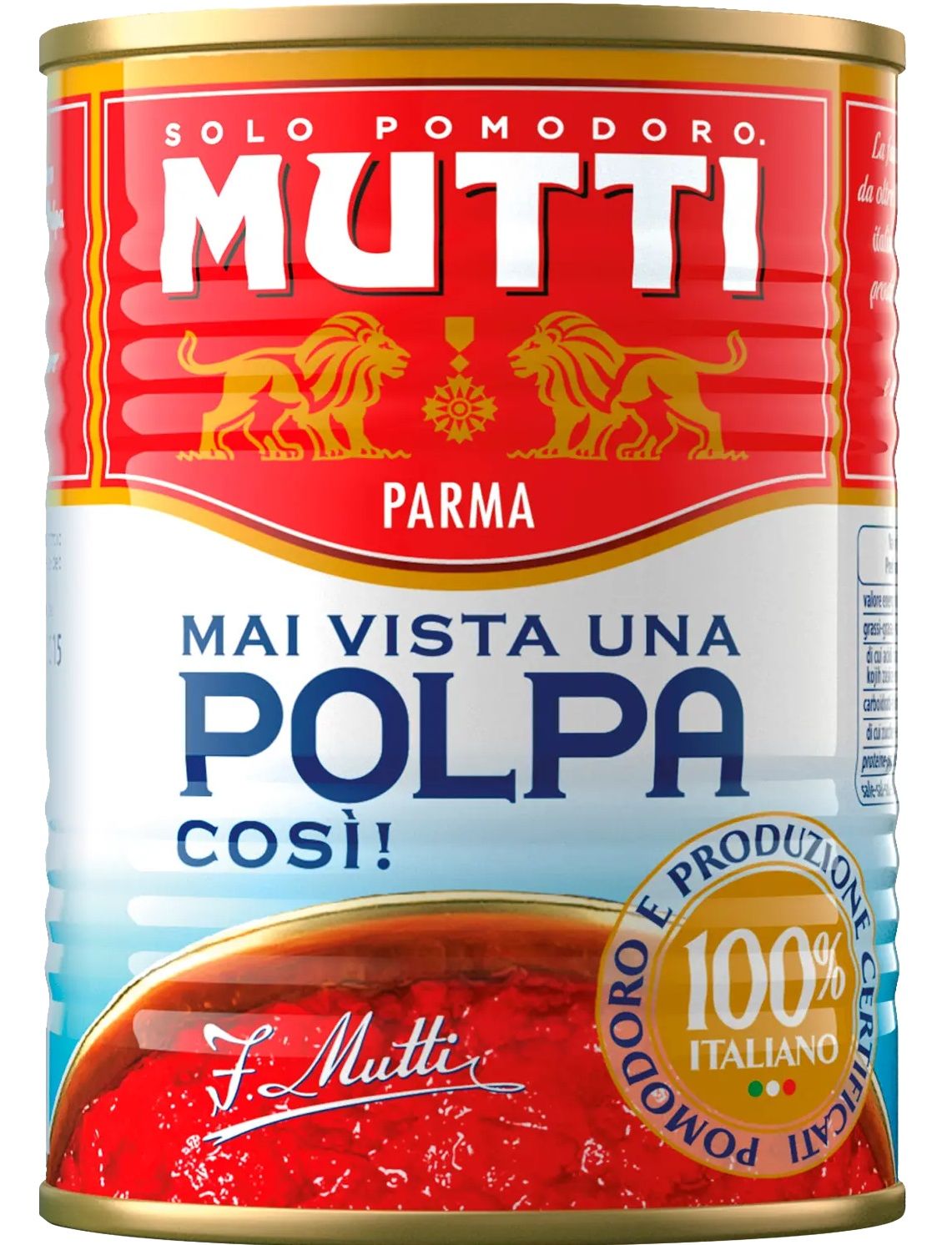 М’якоть томатів Mutti у дуже дрібних шматочках зберігає всю свіжість свіжозібраних помідорів. Це унікальний продукт, оскільки його найбільш м’ясоподібна частина поєднується з томатним соком, нарізаним на дуже дрібні шматочки, що робить його стійким до тривалого приготування, навіть при високих температурах, наприклад, у духовці. Він ідеально підходить для домашньої піци, для приготування рецептів на основі м'яса, овочів або бобових, а також для приправ свіжої манної каші або яєчної пасти.