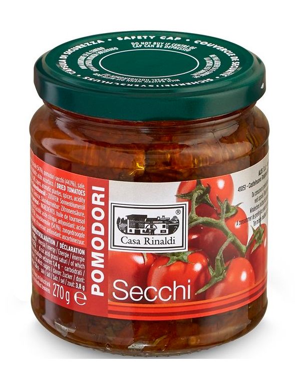 Наші сушені помідори мають дуже приємний кисло-солодкий смак; каперси, спеції та ароматні трави додаються до олії з насіння, вибраної тому, що вона легша та ідеальна для консервування помідорів, що сприяє наданню продукту повного, смачного та інтенсивного смаку.