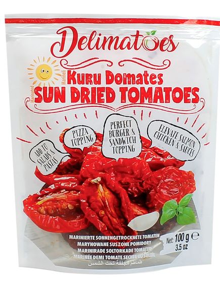 Склад: сушені помідори, олія рослинна, оцет, часник, сіль, цукор, мікс спецій, цибуля, регулятор кислотності (лимонна кислота Е330), кислотний регулятор (оцтова кислота Е260).