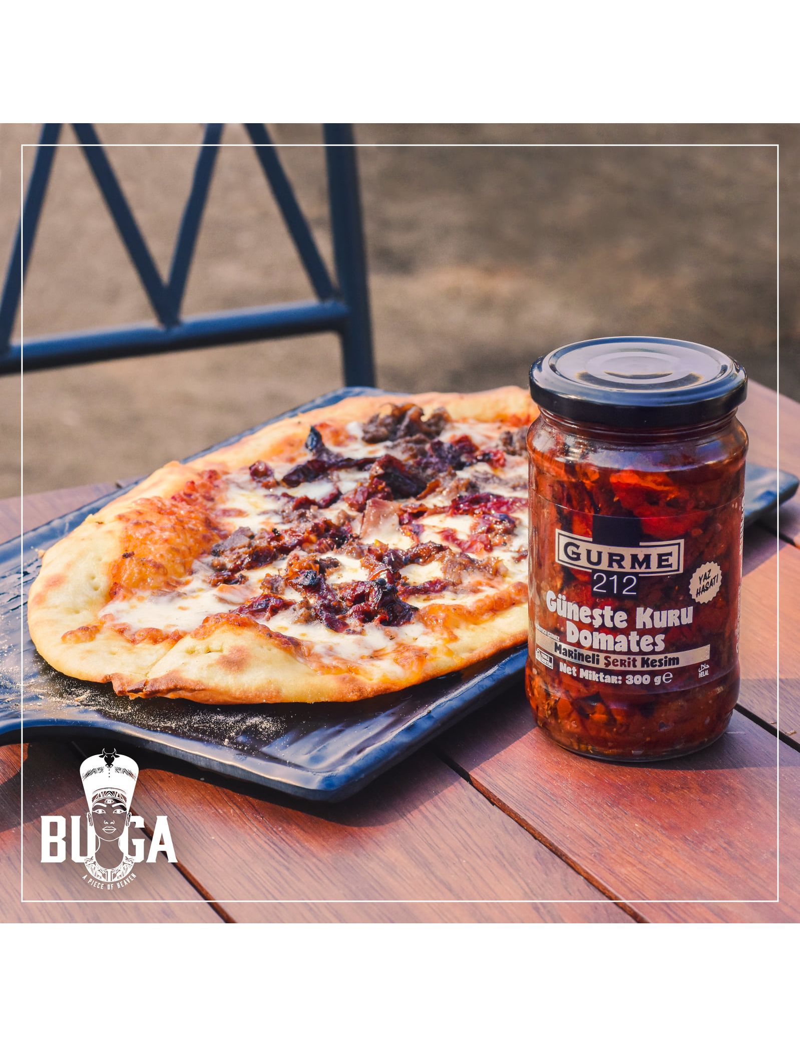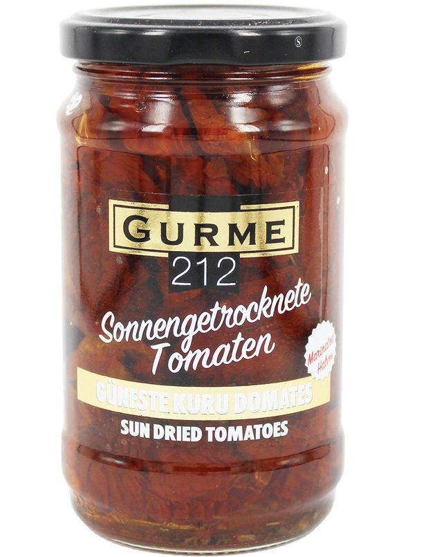 Склад: сушені помідори, олія рослинна, оливкова олія, оцет, часник, сіль, цукор, базилік, майоран, цибуля, регулятор кислотності (лимонна кислота Е330).