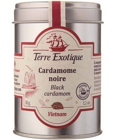 Чорний кардамон Відкрийте для себе чорний кардамон від Terre Exotique Після відкриття відчувається аромат солодких спецій та димного китайського чаю. На смак відчувається ментоловий та камфорний аромати. Використовуйте його меленим безпосередньо перед подачею страви: на смаженому ананасі, птиці, вирощеній на фермі, або в східних стравах.