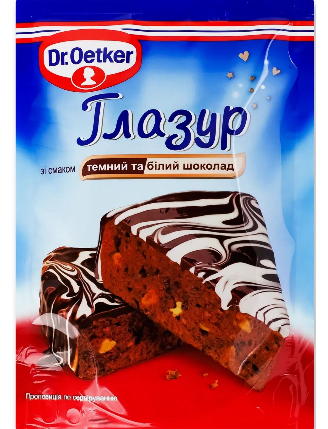 Перший спосіб: помістіть пакет в гарячу (75°C), але не киплячу воду на 5 хвилин, доки глазур не розтане. Дістаньте з води і натисніть декілька раз на пакетик, для більш однорідної текстури. Відріжте кут пакетика. Видавіть глазур на охолоджений торт. Не використана глазур може зберігатись в холодильнику 14 днів. Другий спосіб: Максимальна потужність 360 Ватт. Помістіть пакетик в мікрохвильову піч, встановіть мінімальну потужність і грійте протягом 1 хвилини. Глазур можна вважати готовою до використання, як тільки вона стане рідкою. При потребі, грійте ще 1 хвилину.