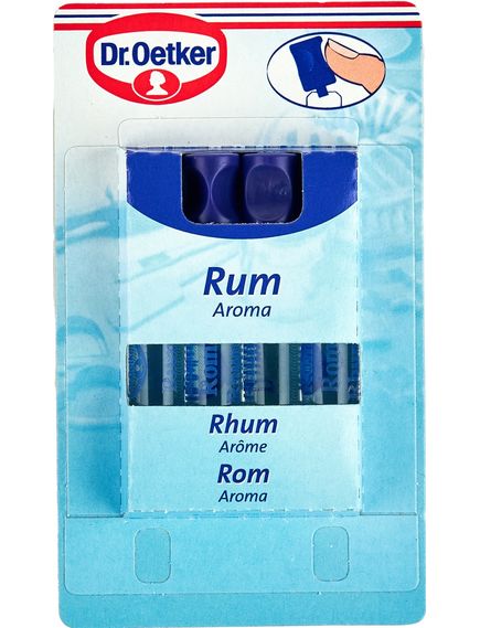 Використання ароматизатора Dr. Oetker додає м'яку ноту рому. Однієї ємкості ароматизатора достатньо для 500 г борошна або 0,5 літра рідини.