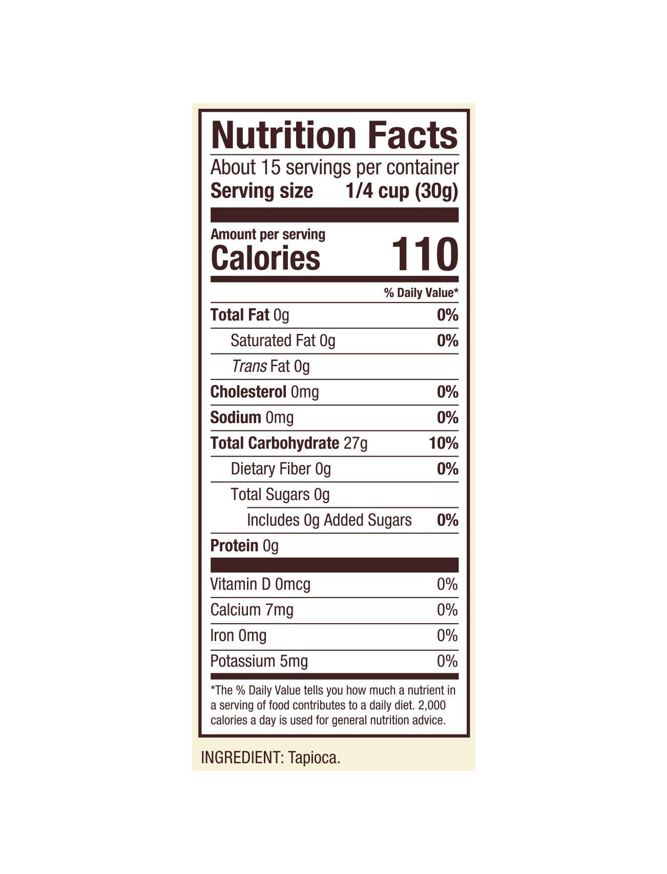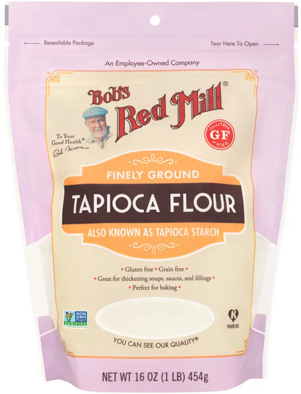 Борошно тапіоки походить з маніоки (manihot esculenta), рослини, поширеної в Південній Америці. Це фаворит палео-дієти, а також один із основних інгредієнтів pao de queijo, або бразильського сирного хліба. Для досягнення найкращих результатів використовуйте з іншим альтернативним борошном, таким як кокосове борошно, борошно маніока, картопляний крохмаль і крохмаль маранти з ксантановою камеддю.