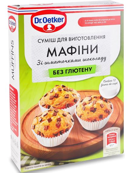 Вам необхідно додати: 2 яйця, 50мл соняшникової олії, 50мл молока. Приготування: 1. Розкладіть 12 форм для випічки на прямокутне деко. Розігрійте духовку до +180℃. 2. У чашку для міксера викладіть суміш для кексів і додайте яйця, олію та молоко. Перемішайте міксером на високій швидкості на високій швидкості протягом 2 хвилини або віничком, поки тісто не стане однорідним. З шоколадних пластівців залиште ложку для прикраси, решту акуратно додайте в тісто за допомогою лопатки. 3. За допомогою двох ложок рівномірно розподіліть тісто по формах для випікання. Посипте кожен кекс шоколадною крихтою, що залишилася. Випікати в середній частині духовки. Готові мафіни залишити охолонути в паперових формочках на решітці і вийняти з формочок, коли вони повністю захолонуть. Час випікання: близько 20-25 хвилин. Електрична духовка: +180℃ (попередньо розігріта). Газова духовка: +180℃, положення 3-4 (попередньо розігріта). Будь ласка, зверніть також увагу на інструкції з випікання вашої духовки