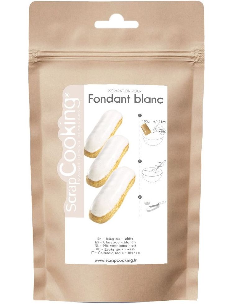Ідеально підходить для глазурі заварних булочок, еклерів, печива, кексів, калісонів тощо. Простий у використанні , його також можна ароматизувати та фарбувати за допомогою ароматизаторів і барвників ScrapCooking® .