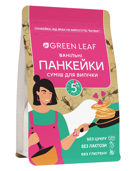 Суміш для випічки Ванільні панкейки 300 г від Green Leaf – ідеальне рішення для смачного й корисного сніданку чи перекусу. Завдяки простому рецепту приготування панкейків не займає багато часу. Більше про особливості цього продукту – далі в матеріалі.