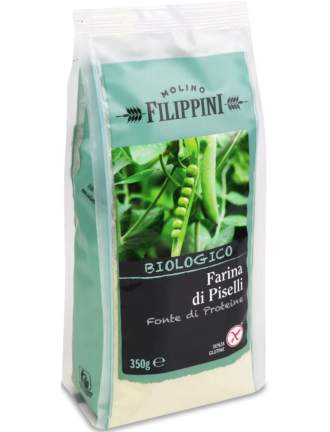 Особливо легкий і засвоюваний бобовий горох багатий мінеральними солями, вітамінами, залізом, магнієм і цинком. Це борошно, ідеальне для створення як веганських, так і не веганських рецептів, дуже підходить для фаринати, крекерів, фрикадельок, ньоккі та як додатковий інгредієнт для домашнього хліба та тіста для макаронів. Крім того, це безглютенове борошно, яке підходить для хворих на целіакію.