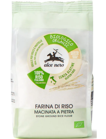 Рисове борошно Alce Nero отримують шляхом кам'яного помелу органічного рису, вирощеного в Італії. Ідеально підходить для хворих на целіакію, оскільки не містить глютену, рекомендовано для приготування кляру та паніровки.