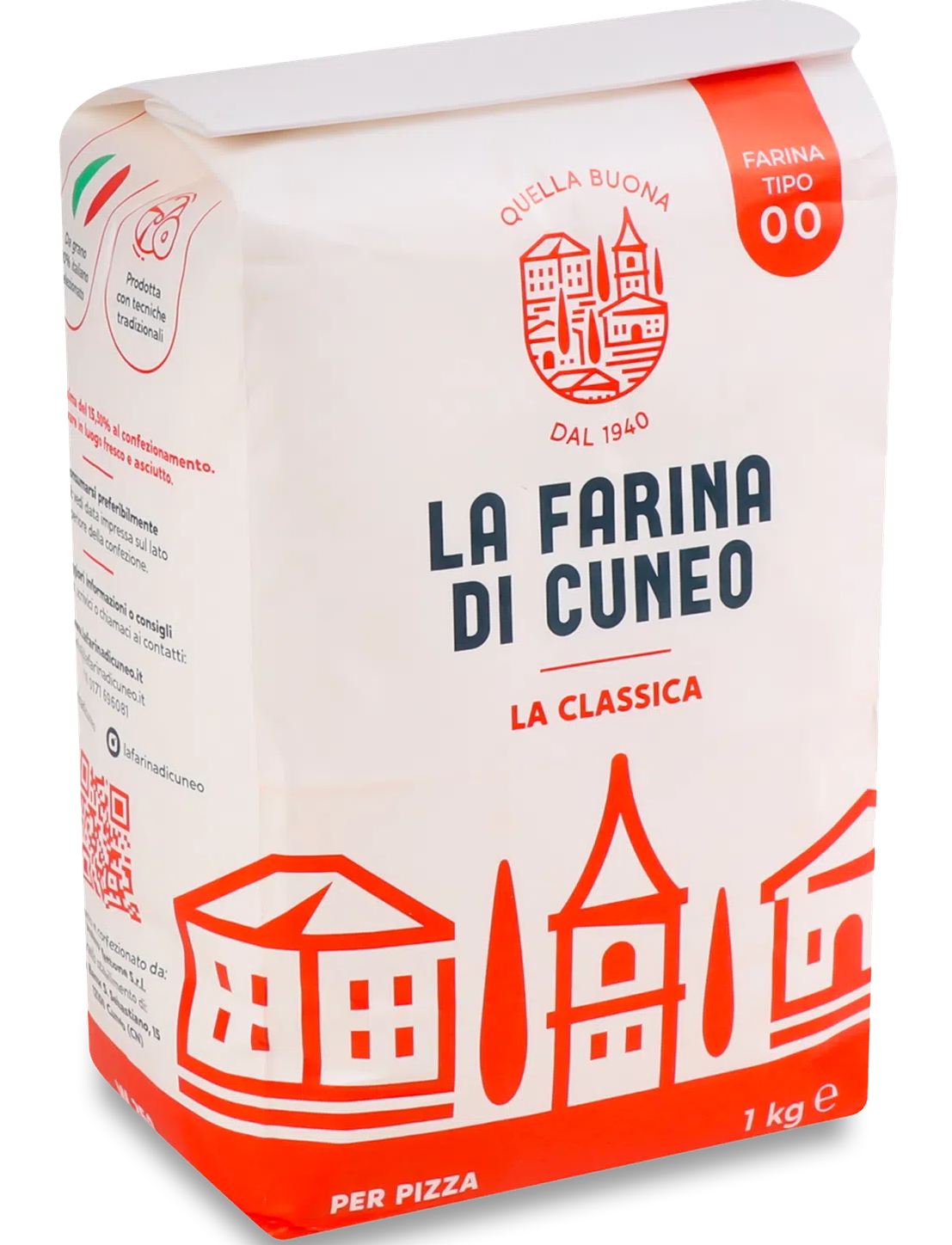 Класичне борошно для піци 00 отримують із ретельної та дослідженої суміші м’яких зерен, щоб надати тісту відмінну еластичність, ідеальну для приготування легкої та легкозасвоюваної домашньої піци. Борошно гарантує м'яке тісто, ідеально підходить для легких і натуральних пікантних заквасок. Підходить для заготовок, які не вимагають тривалого сквашування, таких як фокачча та випічка. Він має високе споживання енергії та є хорошим джерелом фосфору та калію.