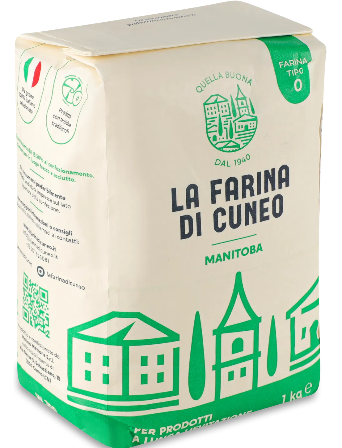 Борошно Manitoba 0 отримують шляхом помелу зерен відібраної міцності. Чудово підходить для рецептів з високою гідратацією, тривалого заквашування або для освіжаючої закваски. Це борошно, яке дуже розтяжне, що дозволяє отримати стійке, більш в’язке тісто, яке з меншою ймовірністю здувається. Ідеально підходить для приготування хлібобулочних виробів, піци, десертів, панеттоне, пандоро та коломбе. Також корисно змішувати з іншим борошном для підвищення міцності.