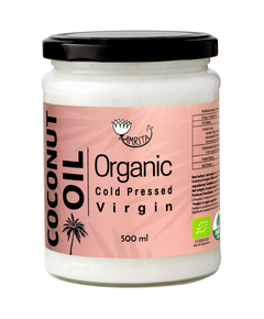 Органічна кокосова олія холодного віджиму має ніжний смак з м'яким і чистим ароматом молодих кокосів. Кокосову олію можна використовувати для: вегетаріанських, веганських, азіатських страв, солодощів, випічки або соусів.  Склад: органічна нерафінована харчова кокосова олія холодного віджиму.