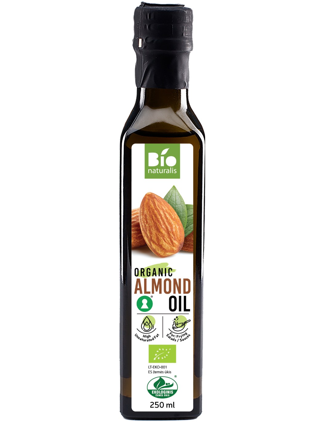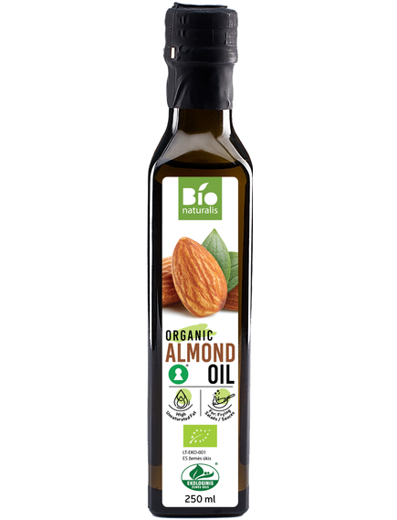 Органічна мигдальна олія холодного віджиму Біоприродна мигдальна олія віджимається з органічного мигдалю найвищої якості, вирощеного в Європі.