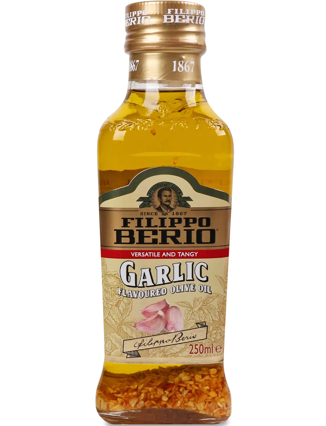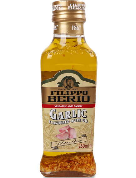 Filippo Berio Олія оливкова Extra Virgin з часником — це оливкова олія Extra Virgin, до складу якої додано натуральний часник для надання особливого аромату і смаку. Олія поєднує в собі високоякісну оливкову олію першого холодного віджиму з часниковим екстрактом, що робить її ідеальним варіантом для людей, які люблять виразні та ароматні страви.