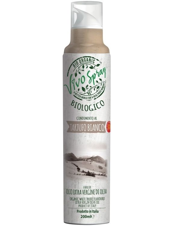 Приправа Vivo Spray зі смаком органічного білого трюфеля чудово збагачує та неповторно ароматизує приготування смачних перших страв на основі білих грибів, різотто, брускетти, піци, омлетів, перепелиних яєць, білого та червоного м’яса, бобових та супів.