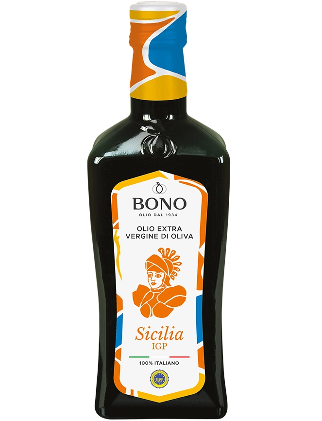 У форматі 500 мл оливкова олія Bono PGI Sicilia Extra Virgin є декларацією якості та традицій. Сорти оливок створюють фруктовий і гармонійний профіль смаку, який ідеально підходить для широкого спектру кулінарних приготувань.