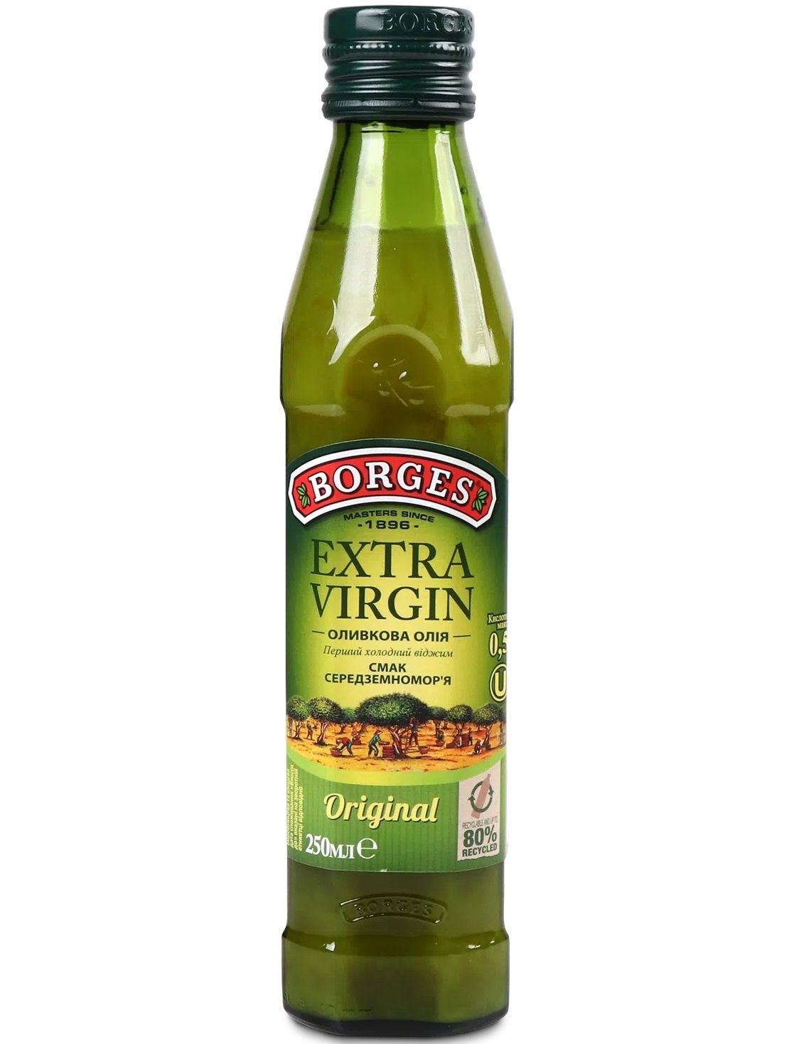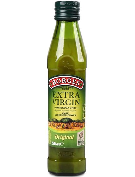 Оливкова олія Borges Extra Virgin першого холодного віджиму є купажною. Загалом Extra Virgin від Borges виробляється з таких сортів оливок: Арбекіна й Охібланка та відрізняється від Extra Virgin Original більш насиченим смаком, з характерною для оливкової олії гіркуватістю.