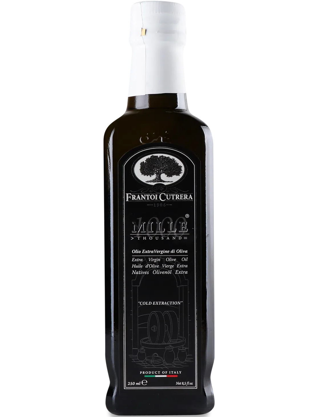 "Mille" означає "тисяча" (від італійського "mille"), і в контексті цієї олії може вказувати на багатство смаків та різноманітність оливкових сортів, які використовуються для її виробництва. Це може також бути натяком на традиції виробництва, які існують в родині Frantoi Cutrera вже багато років — «тисяча» моментів, етапів і терпіння, яке закладене у кожній краплі олії. - Виробництво: