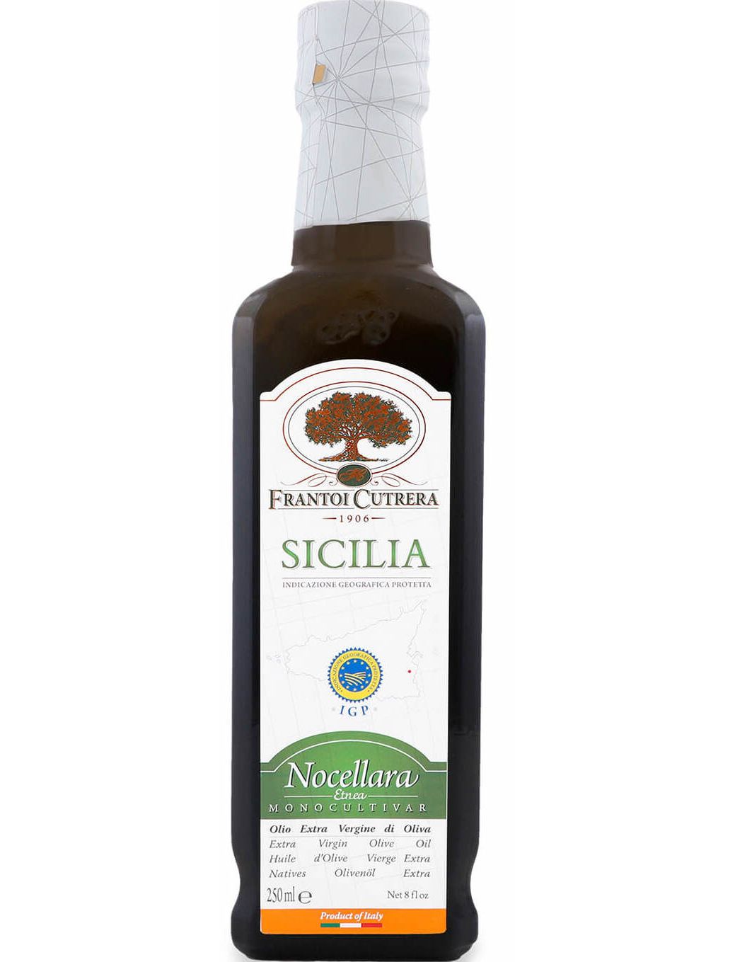 Оливкова олія першого віджиму, отримана з багатовікових оливкових гаїв Nocellara Etnea на територіях навколо вулкана Етна. Типовий місцевий сорт, що росте на вулканічному ґрунті.
