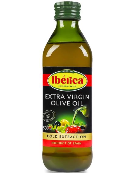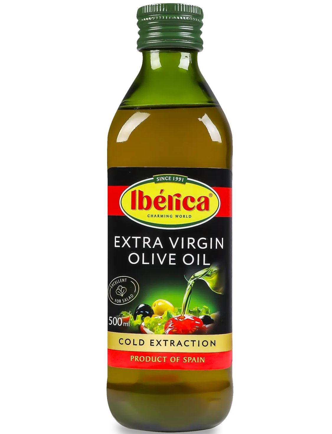 Iberica Олія оливкова Extra Virgin 500 мл — це олія першого віджиму високої якості, виготовлена іспанським брендом Iberica. Вона належить до категорії Extra Virgin, що означає, що олія отримана без хімічних добавок і обробки при високих температурах, завдяки чому зберігається максимальна кількість корисних властивостей.