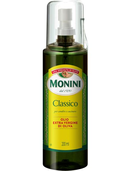 Monini Олія оливкова Extra Virgin Classico спрей 250 мл — це оливкова олія першого віджиму в зручній аерозольній упаковці, яка дозволяє наносити олію рівномірно та зручніше, ніж з традиційної пляшки. Продукт виготовлений італійським брендом Monini, відомим своєю високоякісною оливковою олією, що має чудовий смак і корисні властивості.
