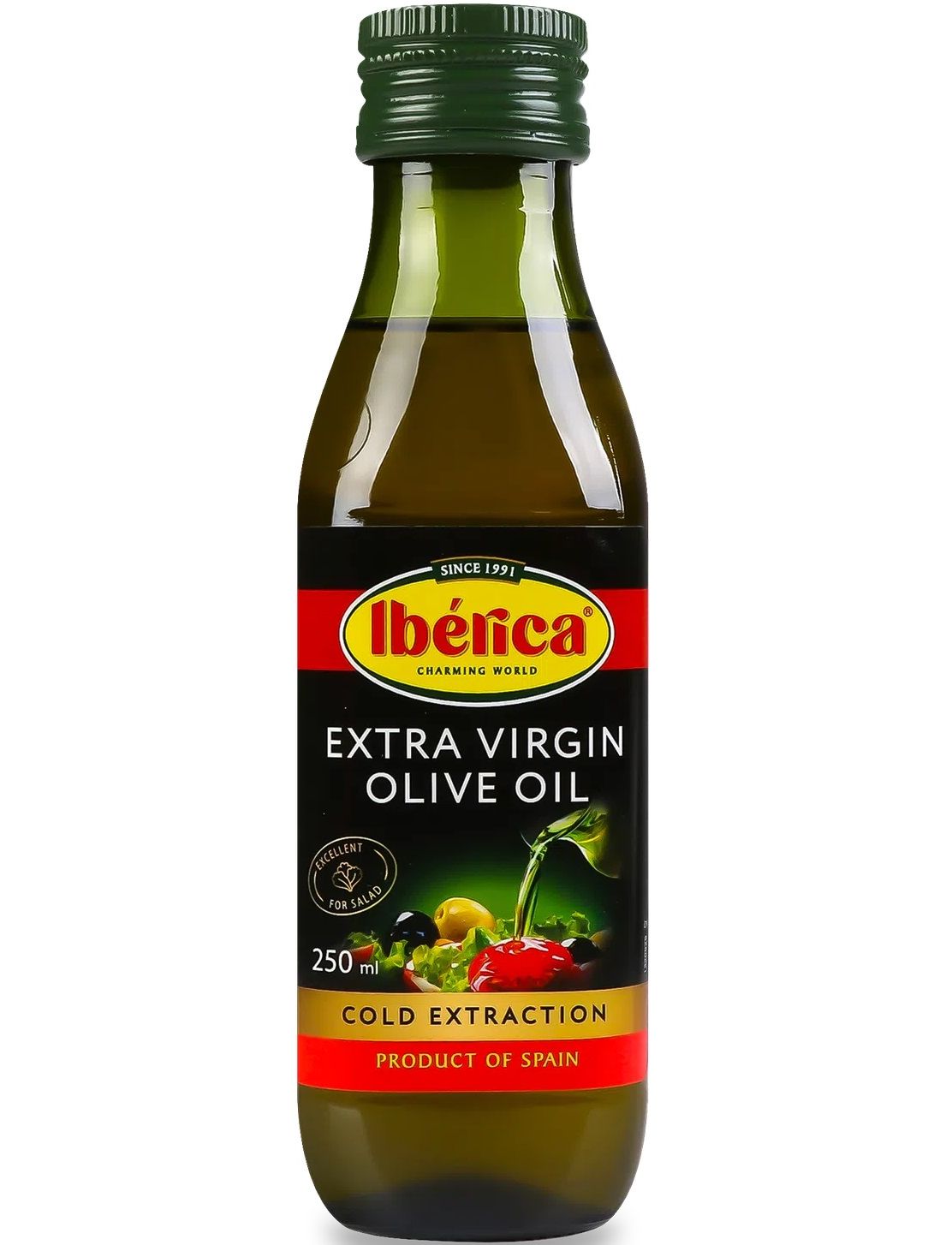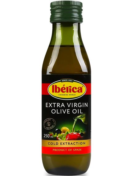 Iberica Олія оливкова Extra Virgin 250 мл — це олія першого віджиму, виготовлена іспанським брендом Iberica, яка належить до категорії Extra Virgin. Це означає, що олія отримана без застосування хімічних добавок і через метод холодного віджиму, що дозволяє зберігати всі корисні властивості оливок.