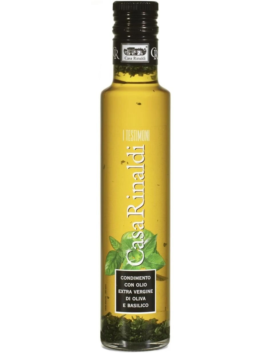 Основу оливкової олії першого віджиму отримують із суміші оливок європейського походження, вирощених в Іспанії, Греції, Італії та Португалії та зібраних у період з листопада по грудень. Casa Rinaldi вирішила використовувати основу оливкової олії першого віджиму, оскільки вона здатна чудово покращити органолептичні характеристики багатьох інгредієнтів.