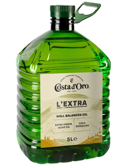 Costa d'Oro Олія оливкова Extra Virgin 5 л — це чудовий вибір для тих, хто хоче мати під рукою велику кількість високоякісної оливкової олії, зручну для використання в будь-яких кулінарних процесах!