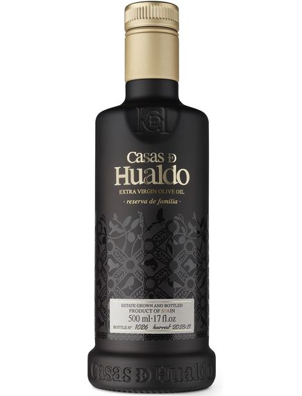 - Оливка: купаж наших сортів Picual, Arbequina, Cornicabra та Manzanilla, усі вирощені у Finca Hualdo.