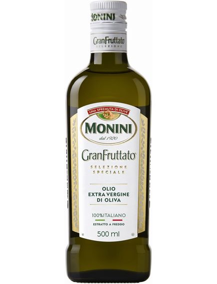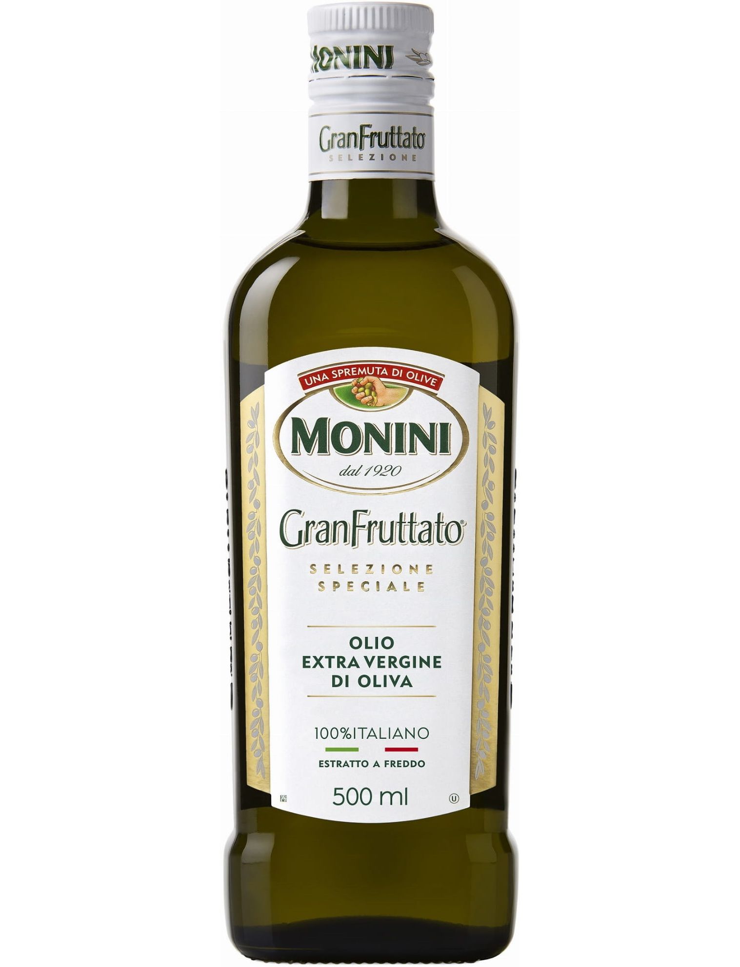 Оливкова олія першого холодного віджиму преміум класу Extra Virgin Monini GranFruttato з добірних італійських оливок із вишуканим фруктово-трав'яним ароматом й інтенсивним присмаком оливок і мигдалю. Ідеально підходить як приправа до салатів, рагу й інших делікатесних страв.