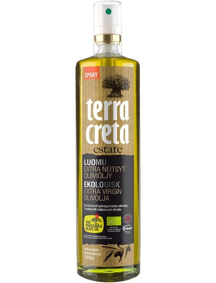 Цей золотисто-зелений відтінок EVOO у пляшці Glass Spray має фруктовий букет мигдалю та груші з оливи Koroneiki. Смак збалансований з м’яким, стійким післясмаком. Оливкова олія Extra Virgin від Terra Creta Estate поставляється в безпечній скляній пляшці зі спеціально розробленим розпилювачем, що забезпечує кращий контроль під час використання на кухні.