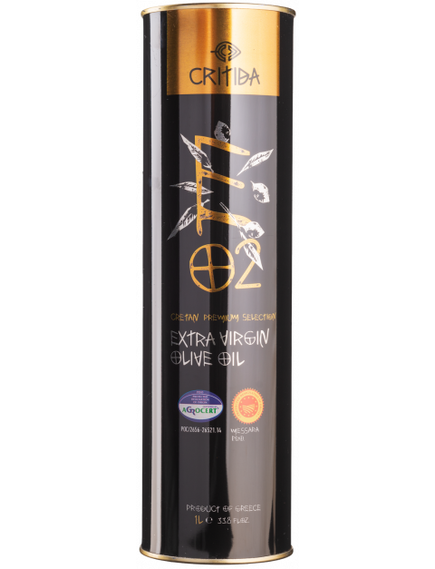 Critida "Messara PDO" — преміальна оливкова олія першого холодного віджиму з географічним захистом походження (PDO) з долини Мессара на острові Крит, Греція. Олія виготовлена виключно з місцевих сортів олив (переважно коронейка та частково царепатра), зібраних вручну та оброблених протягом кількох годин після збору для збереження максимальної свіжості та аромату.