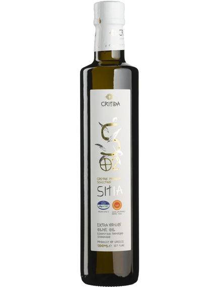 Захищене найменування походження Оливкова олія Extra Virgin Sitia зі знаменитого регіону Крит Сітія (у східній частині острова Крит). Унікальна оливкова олія першого віджиму з натуральними інгредієнтами, насиченим смаком, приємним ароматом, неперевершеними поживними властивостями та кислотністю до 0,2% без хімічних речовин, вироблених природним шляхом шляхом простого видалення оливкових плодів під холодним тиском для того, щоб щоб зберегти всі його вітаміни. Оливкова олія чудово підходить для страв середземноморської кухні, закусок, салатів, овочів, м'яса, риби та птиці.
