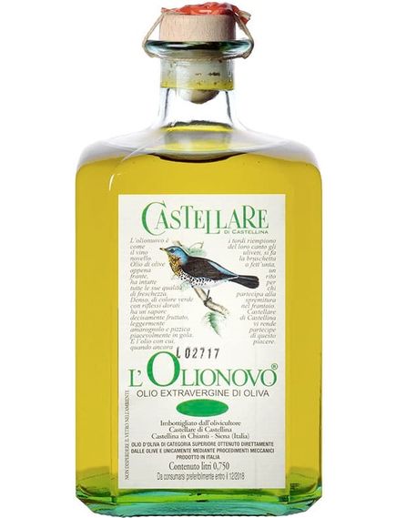 На відміну від вина, якість якого з часом зазвичай покращується, оливкова олія першого віджиму найкраще смакує свіжовичавленою. Саме тому, щоб підкреслити цю характеристику, Кастелларе запатентував назву L'Olionovo – автентичний вираз, за допомогою якого фермери визначають олію, щойно вона виходить з млина. Насичений зелений, достатньо пряний, щоб зробити його жвавим та приємним на смак.